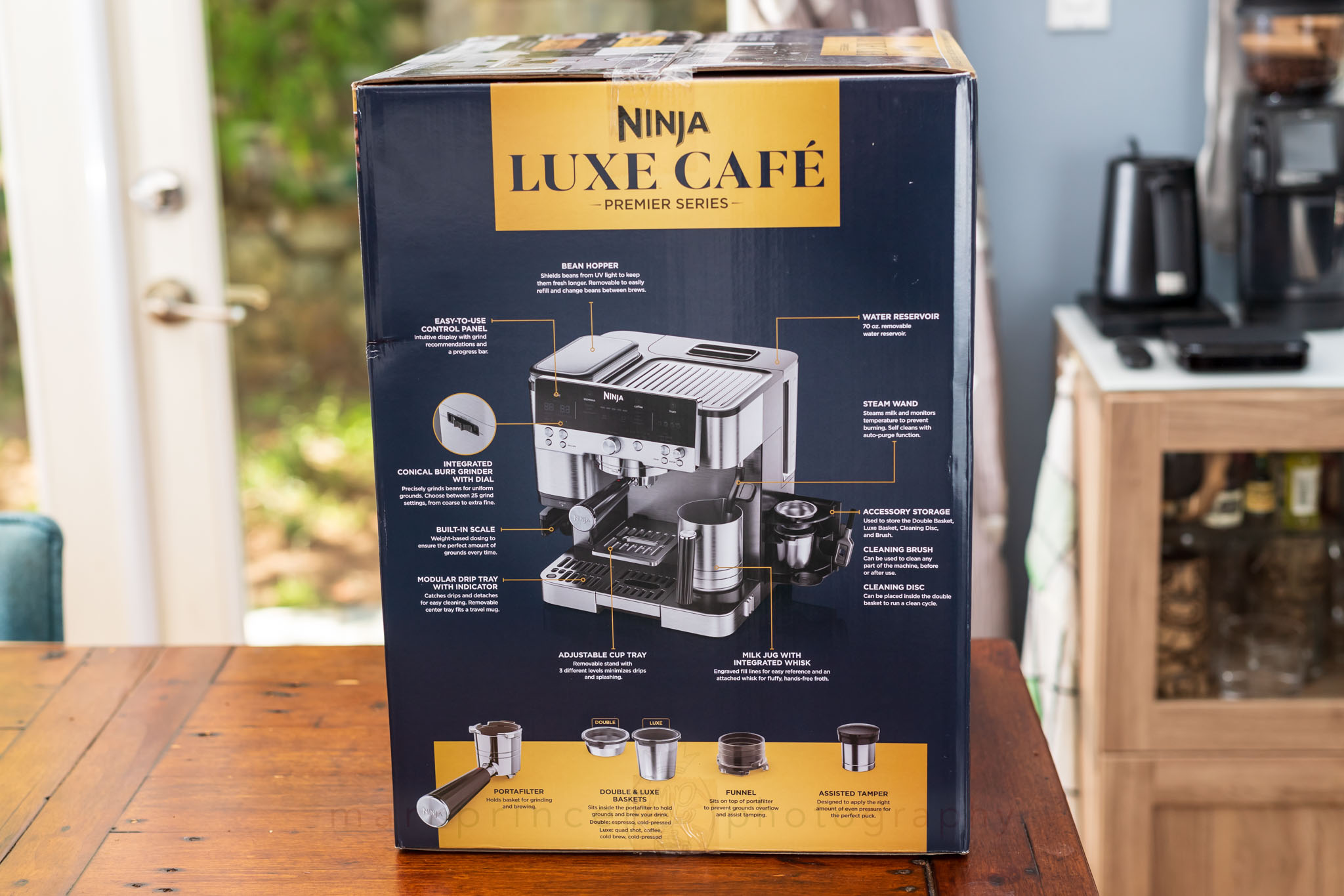 Let’s be real for a second: Ninja is a company with infomercial DNA. Their parent company, Shark, cut their teeth selling vacuums to insomniacs on late-night TV, and that heritage still exists in the Luxe Café Premier (ES601). The box practically screams “As Seen on TV.” It is covered in splashy graphics, bold claims, and enough reading material printed right on the cardboard that you could probably skip the manual entirely (sidenote: don’t; always RTFM). It is loud, it is busy, but hey, you definitely know what you just bought.