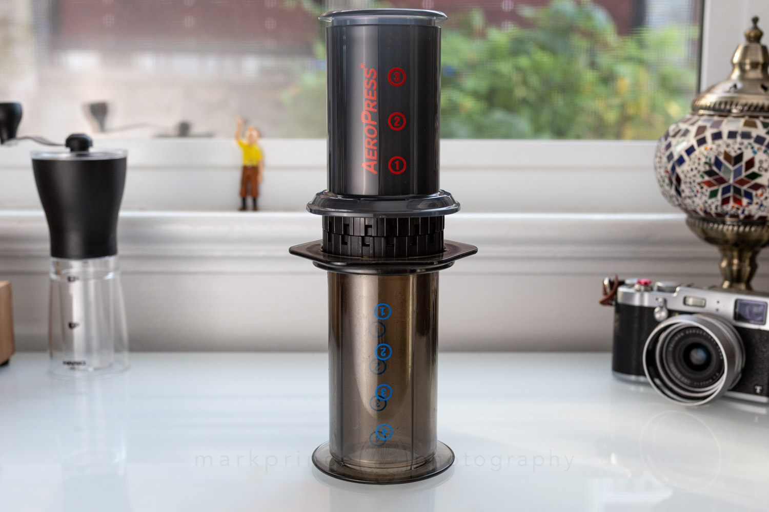 For the longest time, not much changed about the Aeropress, other than aesthetics. The initial version was more of a clear plastic (which changed colours with age), and more recent versions of the Aeropress where made with smoked translucent plastic, and different numbering stencils on the device. But the dimensions and structure has remained the same since launch. It’s nicely suited for travel, though you do need to still have a cup, a grinder, and a way to make hot water. Instagram is chock full of photos of people Aeropressing on airplanes, on the top of mountains, on sandy beaches. While it wasn’t designed for travel, it handled travel very well.
